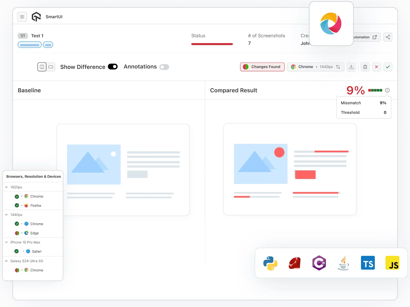 Ensure pixel-perfect applications with Appium Visual Testing across multiple languages like Java, JavaScript, and C#. Automate visual regression tests with Appium to reduce test execution time.